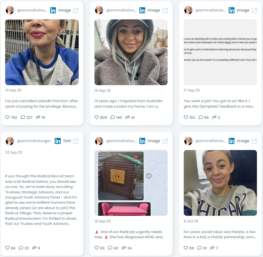People listen to Emma because she doesn’t sugarcoat the truth. Her posts are raw, heartfelt, and often filled with humor and frustration in equal measure. She’s not afraid to share personal stories, whether they’re about leadership burnout, systemic inequality, or the realities of running a social enterprise. That openness cuts through LinkedIn’s corporate noise and builds trust with followers who crave authenticity and impact-driven dialogue.