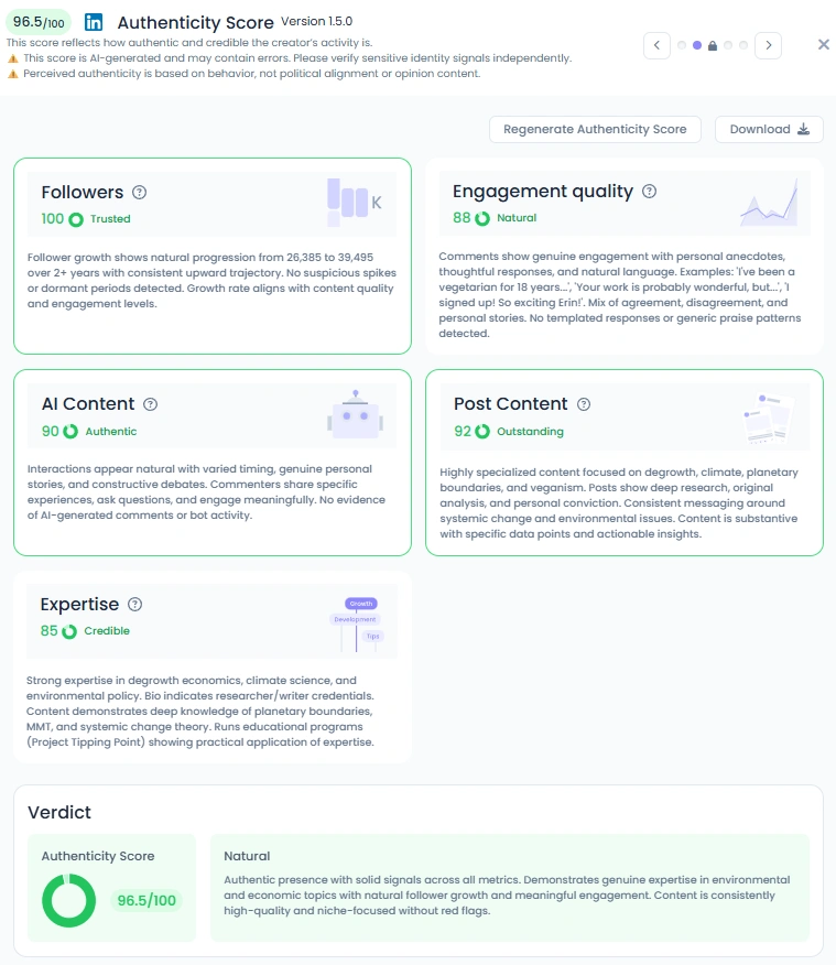 The climate story is shifting from “grow then fix” to “live well within limits.” People want credible voices who can decode policy, debunk greenwash, and point to workable paths. Erin sits at that crossroads with research-led content and community tone. She helps audiences navigate trade-offs without losing momentum.