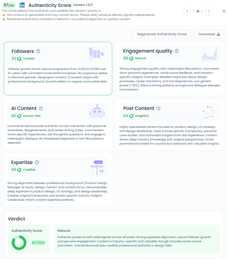 With an Favikon Authenticity Score of 87/100, Femke stands out as a voice that balances authority and honesty. Her posts blend personal experiences with industry frameworks, sparking meaningful discussions about growth and design maturity. She avoids overly polished narratives, instead choosing real stories and reflective insights that connect on a human level. This transparency has built a loyal following of professionals who see her as both an expert and a peer.
