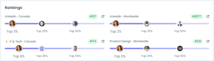 Femke’s audience has grown steadily from 3,400 to over 12,500 followers, with engagement rates that outperform typical design-focused creators. Her Influence Score of 6,150 points places her among the Top 3% of LinkedIn creators in Canada and within the Top 5% in Product Design worldwide. Her engagement quality score of 88/100 reflects meaningful community dialogue, with comments often evolving into collaborative discussions and peer mentorship moments.