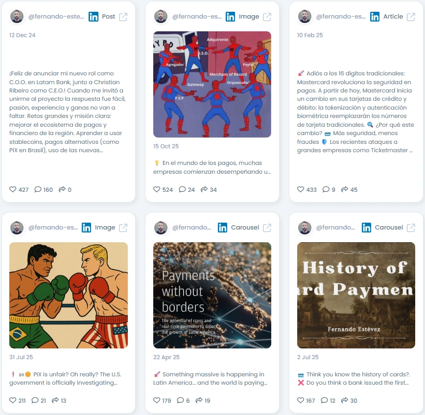 People listen to Fernando because he breaks down complex financial systems into content that is both analytical and easy to follow. His tone is clear, confident, and grounded in experience. He often uses case studies, charts, or historical comparisons to explain market trends, making even the most technical topics accessible. Whether he is analyzing Mastercard’s tokenization updates or debating the fairness of PIX, Fernando’s posts spark genuine industry conversation and challenge assumptions with solid data.