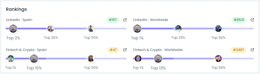 Fernando has an Influence Score of 6,142 points, placing him among the top 2% of LinkedIn creators in Spain and the top 1% in Fintech & Crypto. His following has grown organically from 15,000 to over 22,000 professionals in three years, with consistent engagement from both European and Latin American markets. His Engagement Quality (82/100) and Post Content (92/100) show strong credibility and sustained audience trust. Every post brings thoughtful reactions, proving that professionals see real insight in his expertise.