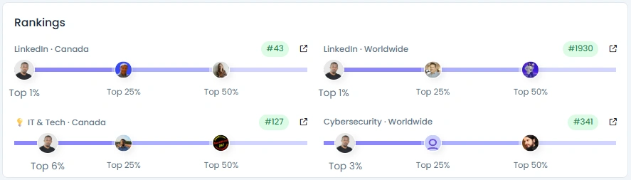 With an Influence Score of 6,684 points, Francis ranks in the top 1% of LinkedIn creators in Canada and the top 3% worldwide in cybersecurity. His engagement quality stands at 88/100, proving his audience is active, professional, and deeply invested. His posts consistently receive hundreds of likes and dozens of technical discussions, often featuring participation from C-level executives and security architects. His growth is steady, organic, and built on real thought leadership.