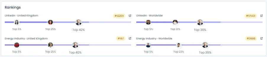 Giles’s follower base has grown steadily over years, from roughly 15,793 to 23,620 across five plus years. He has an Influence Score around 1,790 pts and ranks in the top percentiles for the energy sector. Post content scores are outstanding, and engagement quality is strong with meaningful comments from industry peers. His posting rhythm is steady, with frequent event updates and sector analysis.