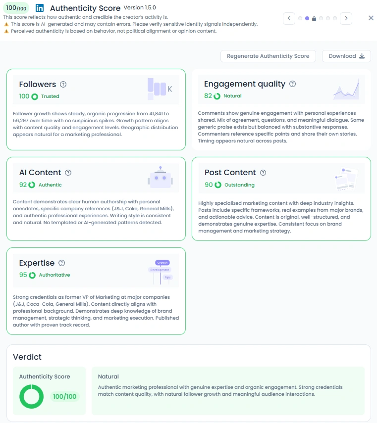 With an Favikon Authenticity Score of 100/100, Graham’s credibility comes from genuine expertise and lived experience. His posts are built on lessons from real campaigns, personal anecdotes, and decades of fieldwork, not buzzwords. Followers appreciate that his tone is human, direct, and grounded, mixing personal reflection with high-level marketing insight. His audience engages thoughtfully, sharing their own experiences and questions, creating a collaborative learning environment around every post.