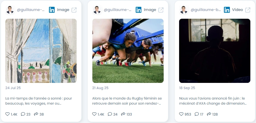 People listen to Guillaume because his content is Outstanding (91/100) and highly focused on insurance, corporate social responsibility, and business leadership. His posts include concrete data, specific partnerships, and detailed company initiatives. He communicates with an Authoritative content style. This executive presence aligns with genuine insights and announcements, making his voice highly credible in the French business community.