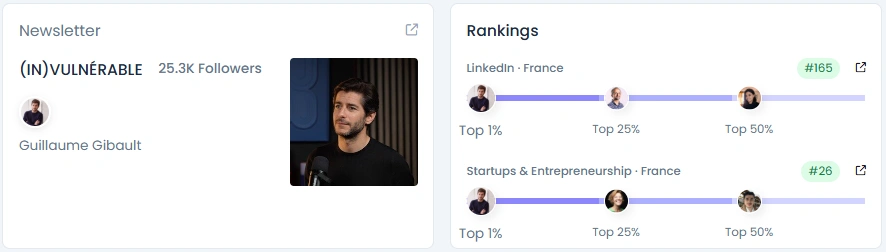 Guillaume ranks in the Top 1% of LinkedIn creators in France and in the Top 1% of the Startups & Entrepreneurship category. His follower count has grown to over 123,000, supported by a loyal community engaged in discussions about business, sustainability, and innovation. His Influence Score of 8,051 points highlights both his reach and the strength of his content. Posts often gather tens of thousands of views and reactions across LinkedIn and Instagram, proving that his message resonates far beyond his brand.