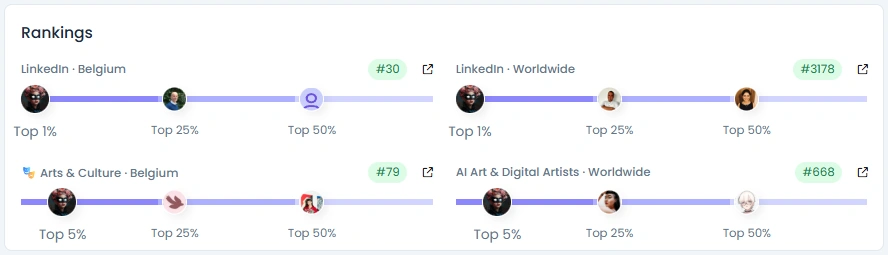 Henry has grown from about 5,667 followers to more than 19,421 over the years, which shows a strong and natural trajectory. His Influence Score sits at 7,470 points, placing him in the top 1 percent in Belgium for LinkedIn. He maintains steady engagement with long, thoughtful comments from other professionals in VFX and AI film. His posting rhythm is consistent and always tied to new creative releases or insights.
