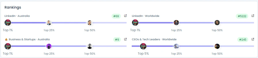 Hugh has grown his following from 16.8K to nearly 20K, maintaining consistent and organic growth. His Influence Score sits at 8,037 points, with engagement quality rated 88/100, showing strong and genuine interaction. His posts average tens of thousands of likes, peaking with over 598K views on key campaigns. Ranked in the Top 1% of LinkedIn voices in Australia and Top 5% worldwide among CEOs, his influence speaks for itself.