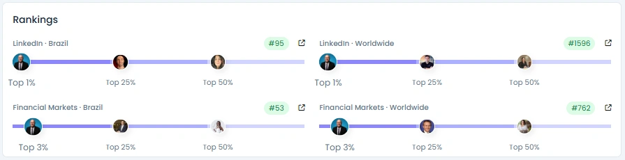 Ilan has grown from about 13,000 to nearly 29,000 followers in four years, showing consistent upward momentum. His Influence Score sits at 7,709 points, placing him in the Top 1 percent of LinkedIn creators in Brazil. Engagement quality is solid, with high interactions on his major announcements and diplomatic updates. His posting cadence is steady, mixing X and LinkedIn content that reaches both institutional actors and the broader public.
