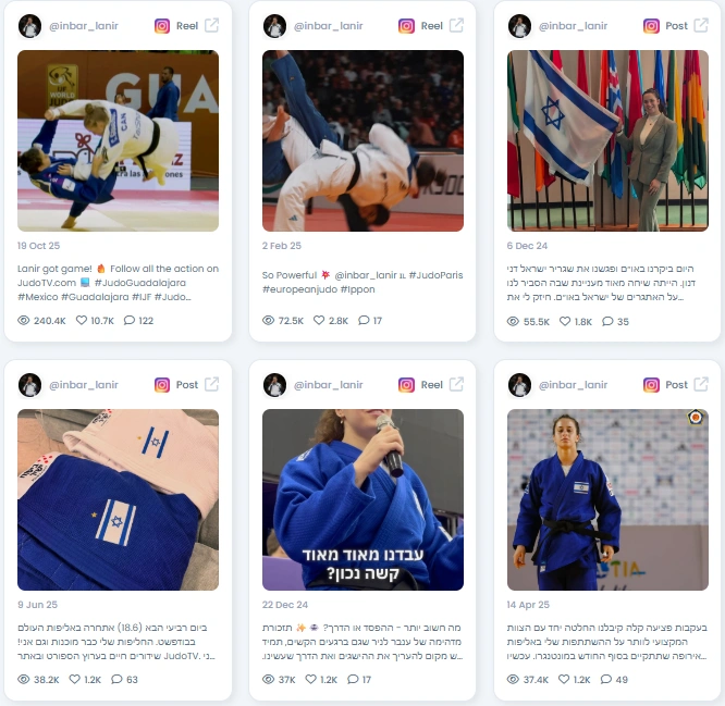 Inbar Lanir wins on the mat and wins attention off it. Her posts mix elite sport with honest coaching and proud national moments.