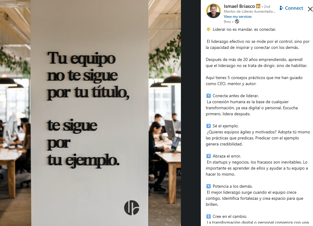 Ismael collaborates with coaches, leadership trainers, and digital entrepreneurs across Europe and Latin America. He’s part of a strong professional ecosystem that includes business mentors, mindset experts, and personal branding specialists. His posts often spotlight peer content, co-created workshops, and leadership development programs. He’s also been featured in thought leadership circles that focus on transforming how professionals lead in the digital age.