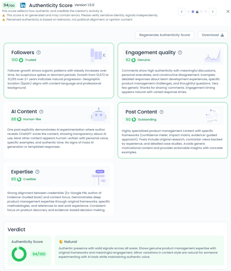 With an Favikon Authenticity Score of 94/100, Itamar’s content feels real and informed. He’s transparent about his own learning process, occasionally sharing experiments like using AI to co-write posts while openly reflecting on the results. His community engages with thoughtful comments rather than empty praise. His balance between professional rigor and personal curiosity makes him a trusted voice in a field often clouded by noise.