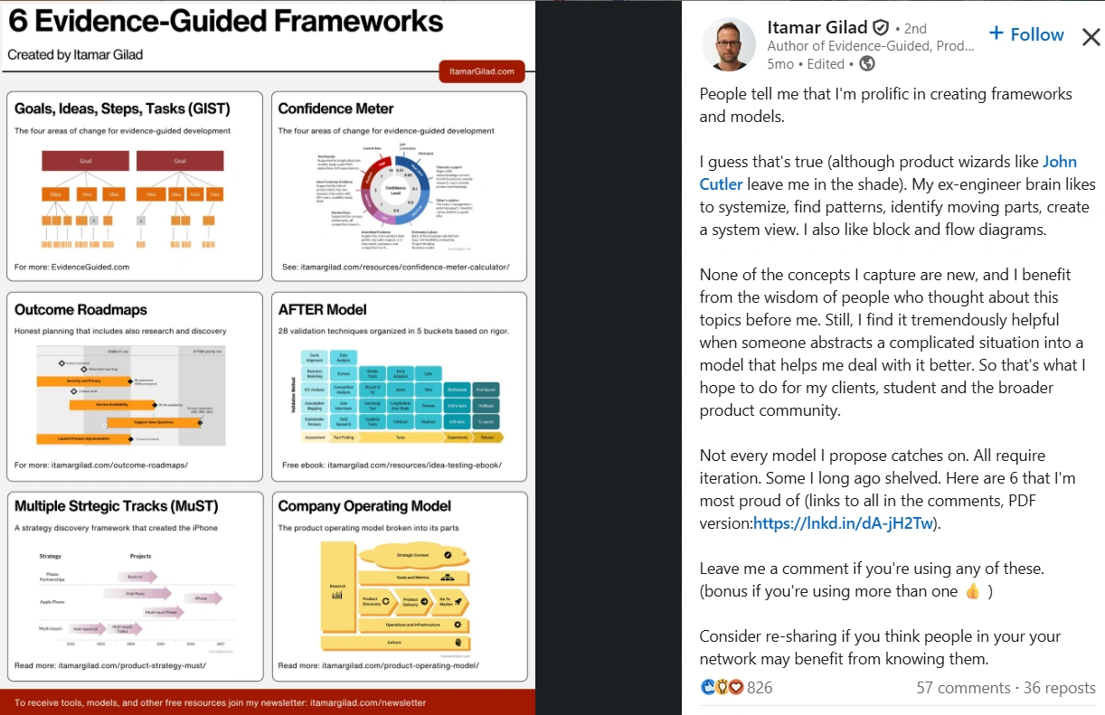 People follow Itamar because he makes product management feel simple without ever dumbing it down. His posts blend frameworks, psychology, and real-world experience. He doesn’t chase hype; he builds clarity. Whether he’s breaking down team structures or debunking trendy startup myths, his tone is calm, insightful, and direct. Every post teaches something practical, which is why product managers keep coming back for more.