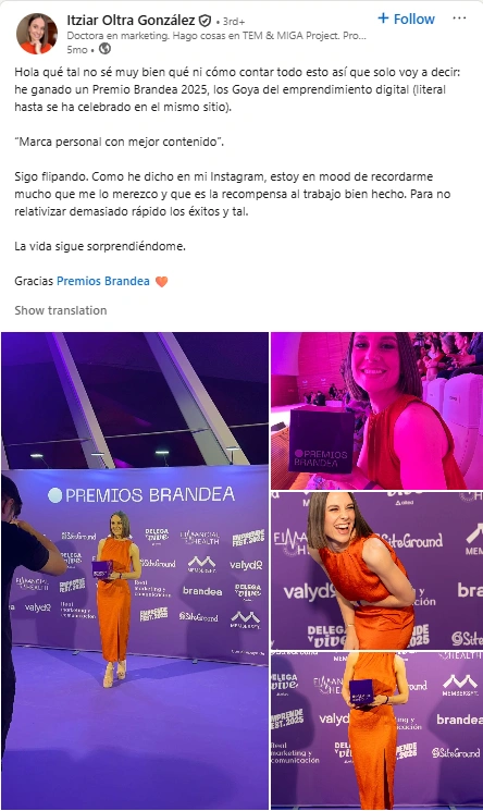 Itziar Oltra González turns marketing theory into content people actually watch. She mixes academic rigour with creator instincts and a lot of personality. Her posts range from TikTok hits to deep campaign breakdowns. That combination makes her useful to students, brands, and other marketers.