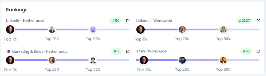 Jacco has grown his audience from 29,568 to over 52,139 followers in just over two years. That trajectory is steady and organic, matching the expectations of a high-quality content creator in the SaaS space. His Influence Score stands at 6,908 points, placing him in the Top 1 percent on LinkedIn in the Netherlands and in Marketing & Sales. His engagement quality is consistently strong, with thoughtful discussions rather than empty likes. He posts with rhythm and purpose, not volume, allowing each piece to spark real conversation.