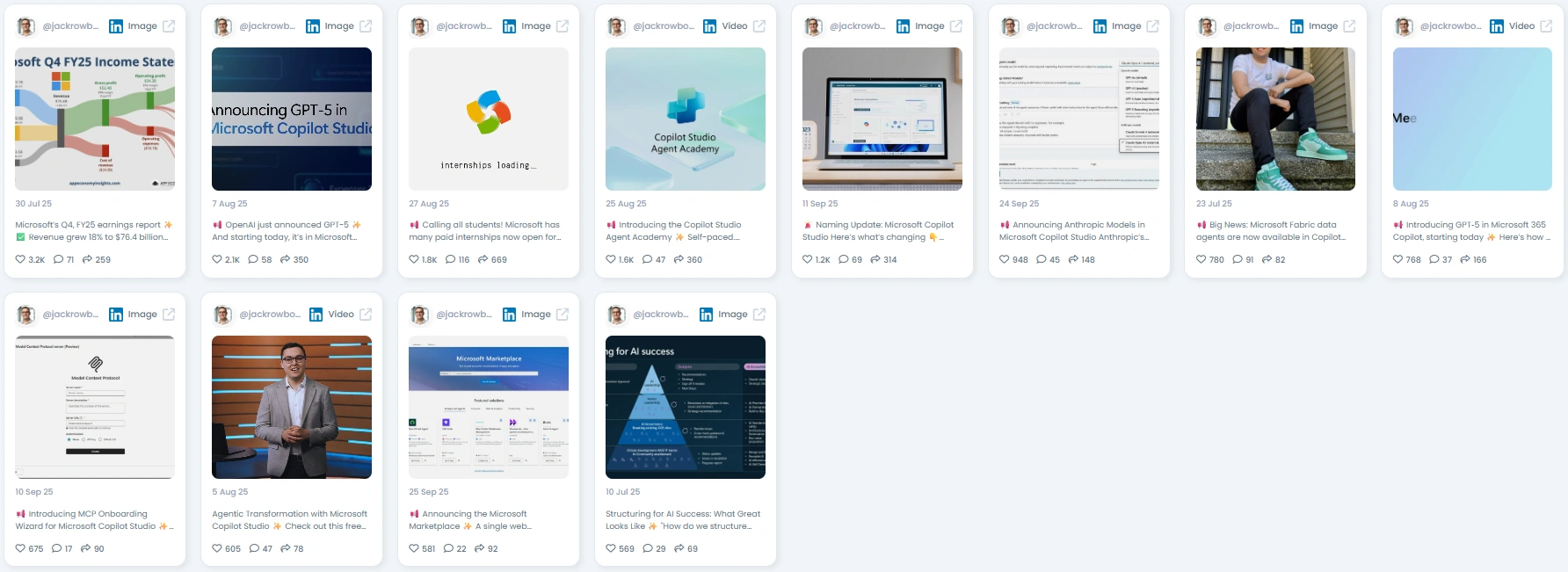 Jack’s work is tightly aligned with Microsoft’s most significant AI initiatives. He has been a key voice in launches like Microsoft Copilot Studio’s Agent Academy, GPT-5 integration, and the Microsoft Marketplace. His content often amplifies the voices of Microsoft executives, while also spotlighting collaboration with OpenAI and other major AI players. This positions him as both an insider and a bridge between corporate innovation and professional communities.