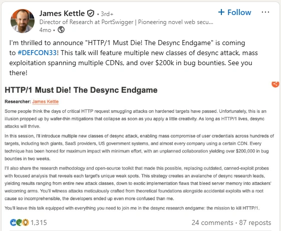 James Kettle is one of the most respected voices in cybersecurity today. As Director of Research at PortSwigger, he is shaping how the industry understands web vulnerabilities and digital defense.