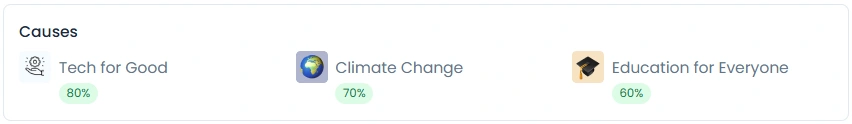 James actively promotes Tech for Good (80%), Climate Change (70%), and Education for Everyone (60%). Through his posts and initiatives, he emphasizes the potential of AI to serve humanity instead of replacing it. His efforts highlight the importance of ethical technology use, sustainability in innovation, and accessible education worldwide. For him, progress is meaningful only when it improves lives.