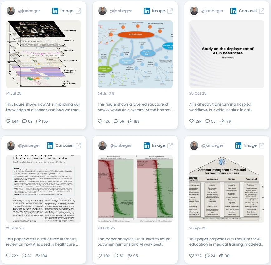 Jan’s posts don’t just share information but also educate. He uses diagrams, frameworks, and scientific visuals to explain complex AI mechanisms in ways that clinicians and researchers can relate to. His writing is calm, structured, and data-driven, often linking studies, medical insights, and ethical considerations. People listen because they learn something concrete every time, and because his tone shows he genuinely cares about improving healthcare outcomes.