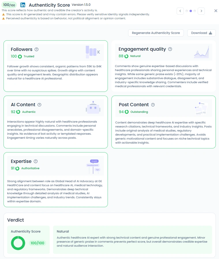 With an Favikon Authenticity Score of 100/100, Jan’s credibility is beyond question. His discussions attract healthcare professionals, medical researchers, and AI experts who engage in meaningful dialogue. Comments often feature scientific disagreements, shared experiences, and references to clinical applications. There are no automated replies or vague praise, only authentic engagement from domain experts.Jan’s presence feels like that of a mentor, not a marketer, making his influence both respected and relatable.