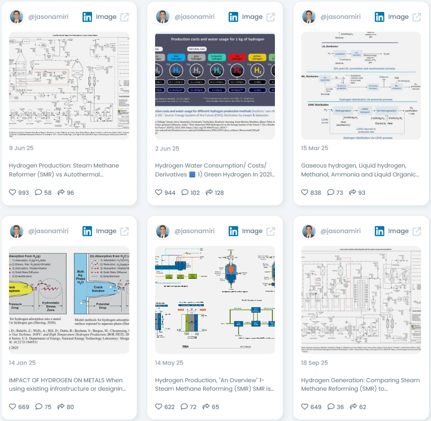 Jason Amiri is one of LinkedIn’s most respected technical voices in renewable energy. His posts do not just talk about hydrogen.