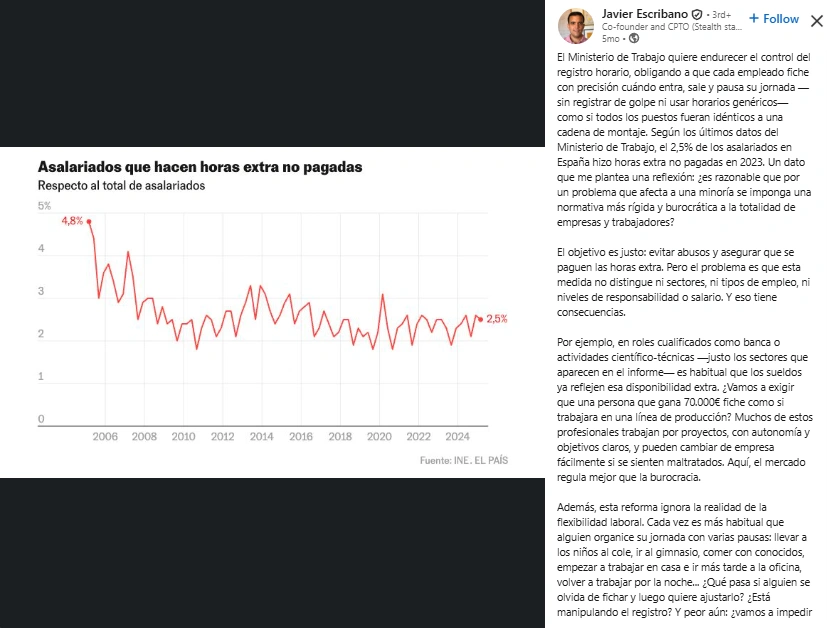 Javier Escribano is one of those voices you stop scrolling for. He mixes product wisdom with straight-talking realism, often offering the kind of clarity the tech ecosystem forgets it needs. His posts hit because they’re grounded in experience, numbers, and common sense. You can feel the operator mindset in every sentence.