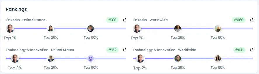 Jay has grown his follower base to over 16,600 with consistent organic growth over four years. His Influence Score at 7,496 points, placing him in the top 1% for LinkedIn creators in the US. He ranks top 3% in Technology & Innovation within the country. His posts regularly cross hundreds of reactions, with standout moments like his tweet on 120 entangled qubits reaching over 176K views. His engagement is not just high in volume, but in quality.