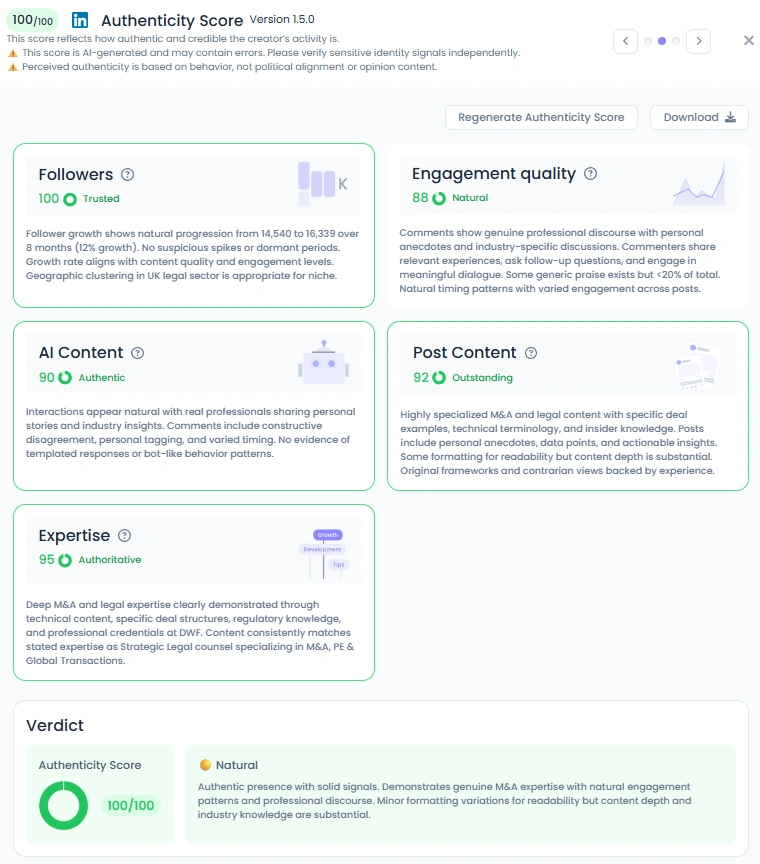 Her circle spans PE partners, CFOs, founders, and GC peers, with DWF leadership and UK dealmakers close in. You’ll also spot investors, Big Four operators, and board advisors who trade notes in her comments. It’s a senior, execution-minded crowd. The ripple effect extends across legal, finance, tech, and policy.
