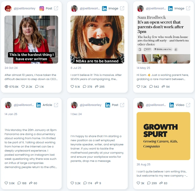 Joeli Brearley makes equality feel urgent and possible. She founded Pregnant Then Screwed and turned personal injustice into a national movement. Her posts mix data, stories, and action. When she speaks, policy shifts.