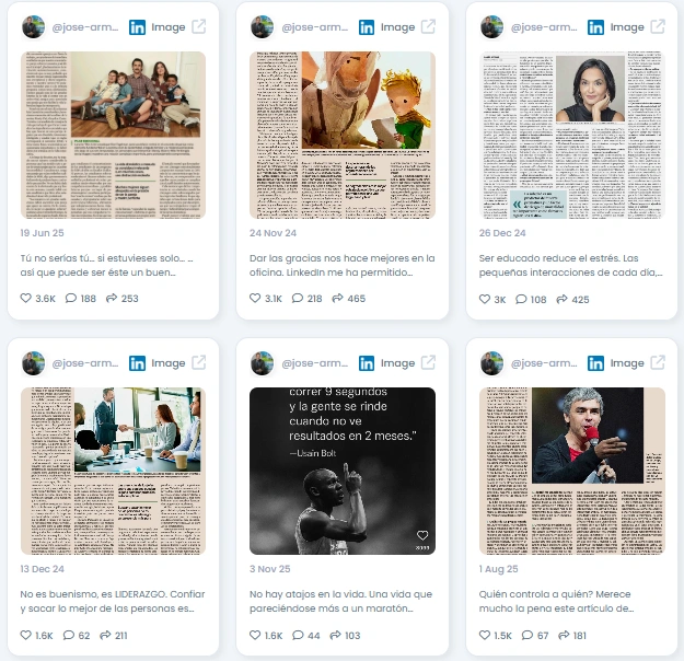José’s communication style is thoughtful and human. He writes in Spanish, often using reflective storytelling to connect professional lessons with personal experiences. His tone is calm and authentic, inviting followers to think rather than just react. He doesn’t preach; he shares. That approach builds trust and emotional connection with an audience that values sincerity over slogans.