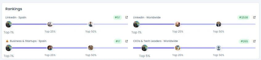 He has built a following of more than 86 000 people, growing steadily over time without artificial spikes. His engagement rate is strong, averaging thousands of reactions and hundreds of comments per post. Ranked in the top 1 percent of LinkedIn creators in Spain and top 5 percent of global CEOs and tech leaders, he reaches both local and international audiences. His influence score of 8 001 points reflects consistent impact and high-quality interactions.