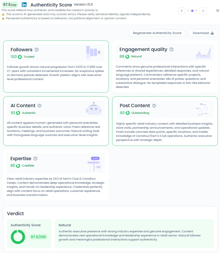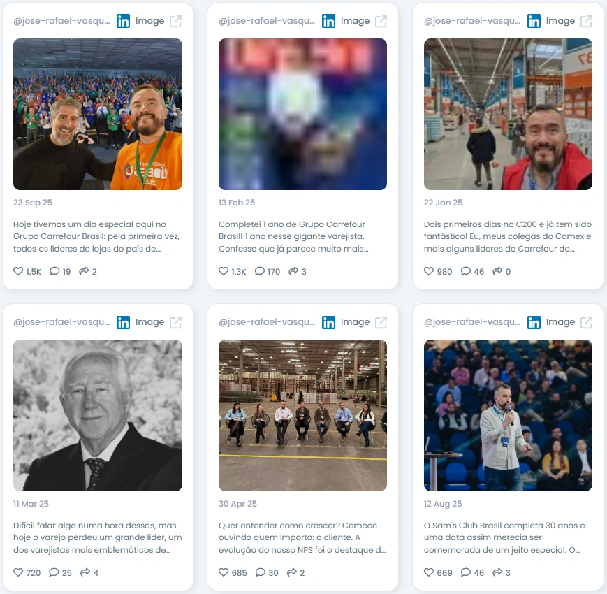 Jose Rafael Vasquez has grown his LinkedIn following from 11,513 to 17,856 over two years with steady, organic growth. No spikes. No gimmicks. Just consistent value. His posts see strong engagement, with likes in the thousands and comment sections full of retail professionals, suppliers, and colleagues. With an Influence Score of 6 and top 1% placement on LinkedIn Brazil, the data confirms what the content already shows: people pay attention.