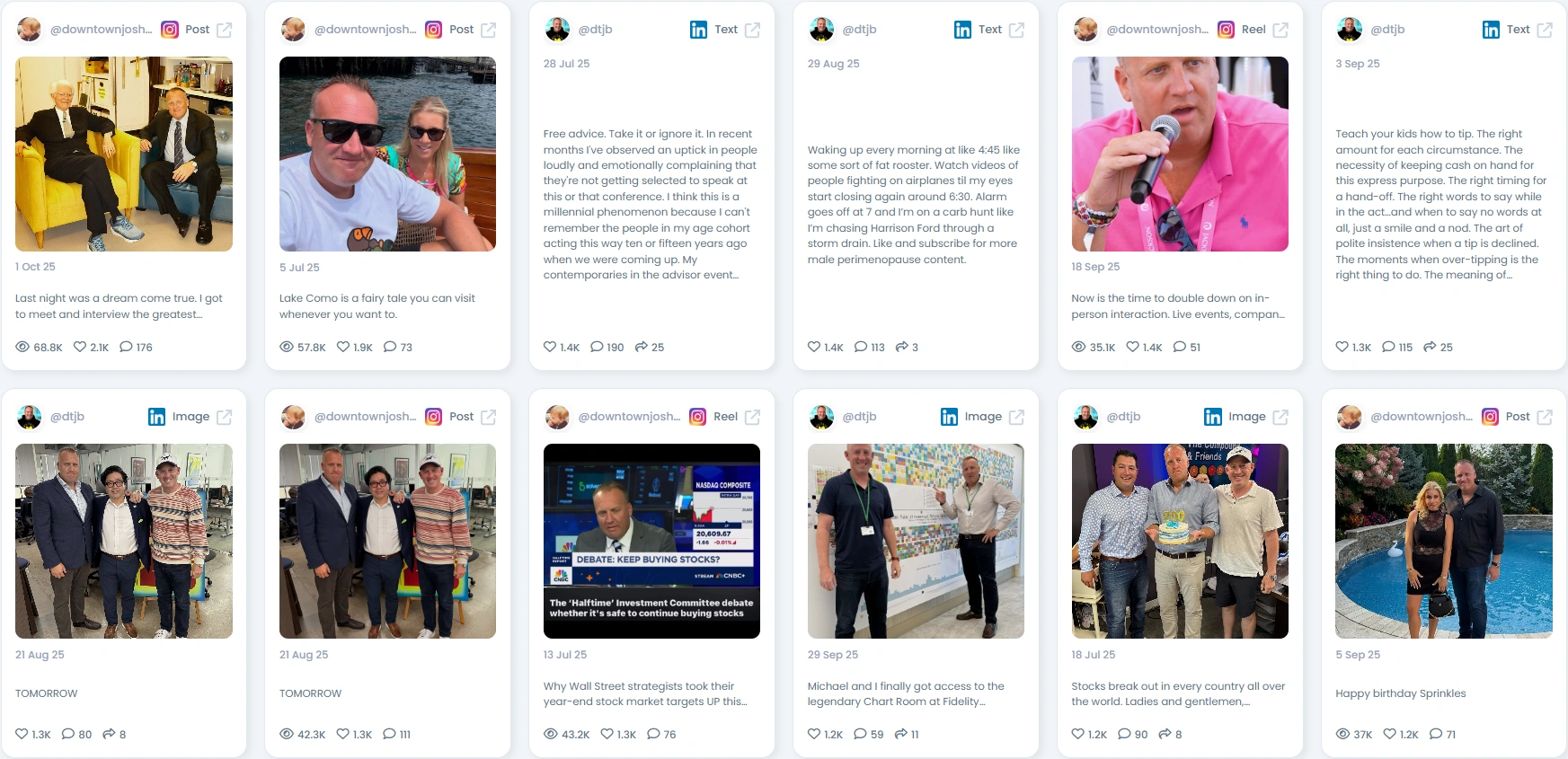 Joshua has grown his LinkedIn following from 292K to 317K in just 14 months, showing steady organic growth. His posts often reach tens of thousands of views, with standout content hitting over 60K–68K views and drawing strong engagement from financial professionals. Ranked #86 in the U.S. on LinkedIn and #38 in Financial Markets, he sits comfortably in the top 1% of voices shaping finance conversations online.