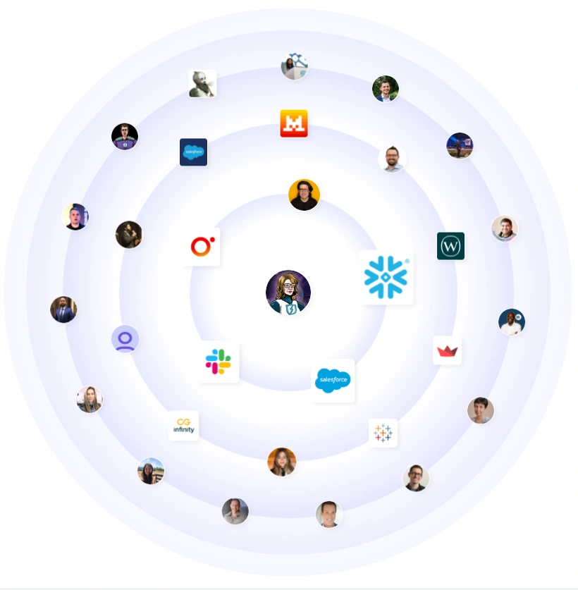 Joyce’s network spans cloud platforms, analytics vendors, and enterprise communities. Logos like Snowflake, Salesforce, Slack, and Tableau sit close to her circle, showing strong platform ties. She connects with product and engineering leaders, conference organizers, and publishing partners at O’Reilly. That mix gives her both technical credibility and channels into the enterprise buying cycle.