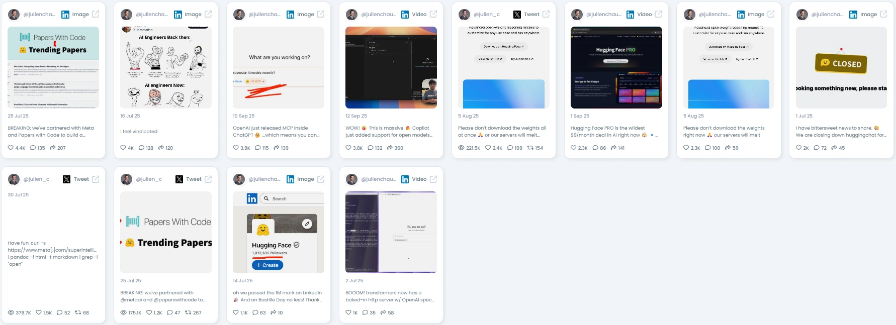 People listen to Julien because he combines technical authority with an approachable style. His posts don’t just announce product updates, they explain why they matter, offering insights into infrastructure, collaboration, and the future of AI. He mixes humor, memes, and real-time reactions to industry news with deep technical insights. This blend makes his content engaging for developers while still accessible to business leaders and policymakers.