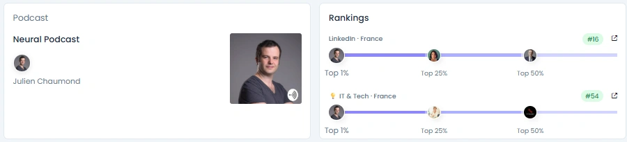 Julien has grown his audience from 104K to over 218K followers in just two years, with highly consistent growth tied to major announcements and collaborations. His Influence Score sits at 8,277 points, placing him in the top 1% of LinkedIn creators in France. Engagement is equally strong: his posts regularly spark hundreds of comments and shares, while his tweets reach hundreds of thousands of impressions. His content mix spans LinkedIn, X, and podcasts, giving him influence across multiple platforms.
