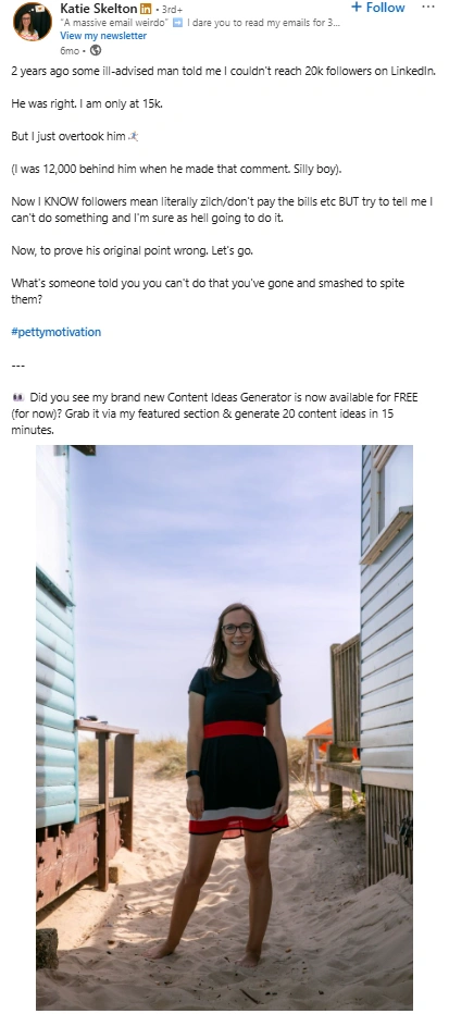 Katie turns email copy into a business skill anyone can learn. Her tone is witty, direct, and full of real-world examples that actually work. She mixes personal stories with practical frameworks and a knack for simple templates. People follow because she teaches results, not gimmicks.