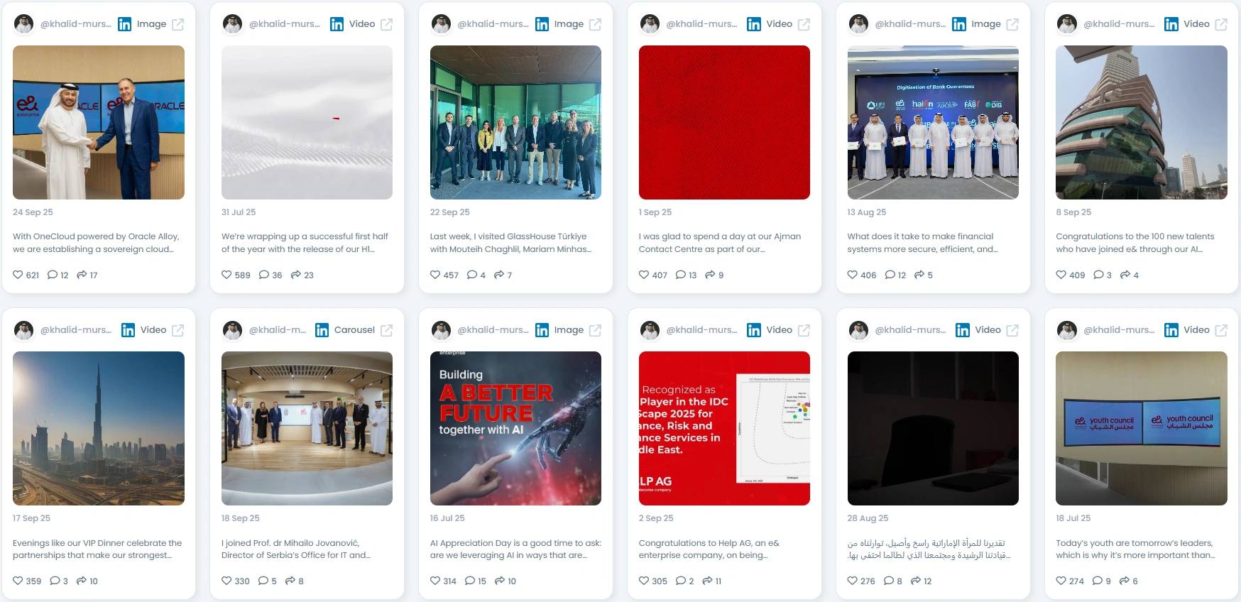 People engage with Khalid because he makes highly technical topics clear, relevant, and future-focused. His posts often highlight real partnerships, concrete achievements, and the human side of digital transformation. Whether it’s showcasing new AI-driven solutions or recognizing fresh talent at e&, his communication combines authority with accessibility. This mix makes his content resonate across audiences from engineers to policymakers.