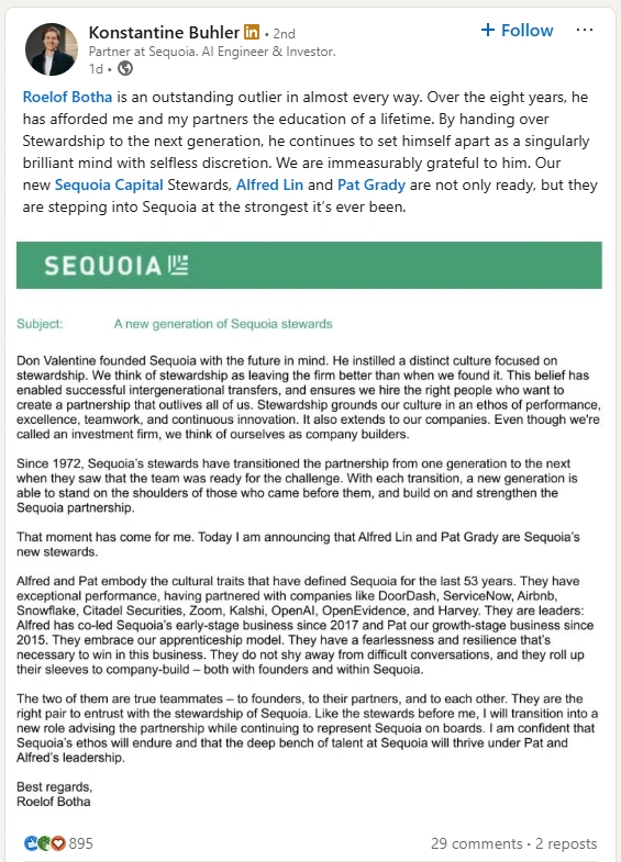 People follow Konstantine because he makes complex ideas feel simple. His posts turn dense AI concepts into clear frameworks that invite conversation. Whether it’s his “finger-over-the-AI” trick for evaluating startups or reflections from Sequoia’s AI Ascent events, his tone stays approachable and practical. He speaks the language of both founders and investors, creating a space where learning feels effortless and authentic.