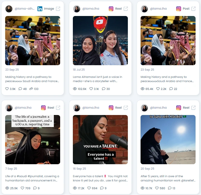 Lama Alhamawi reports where policy meets people. She covers diplomacy, humanitarian missions, and cultural moments with a clear, grounded voice. Her posts read like on-the-scene briefings, then pivot to human stories that stick. If you want the pulse of Saudi foreign affairs in plain words, you follow Lama.