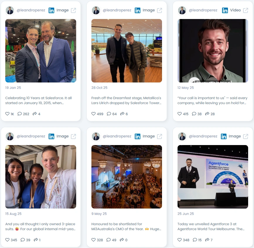 People listen to Leandro because his posts reflect real experience and human perspective. He shares lessons from boardrooms, conferences, and everyday moments with equal authenticity. Whether he’s celebrating ten years at Salesforce or sharing insights from Dreamfest, his tone remains approachable and inclusive. His storytelling connects with professionals who value both ambition and humility.