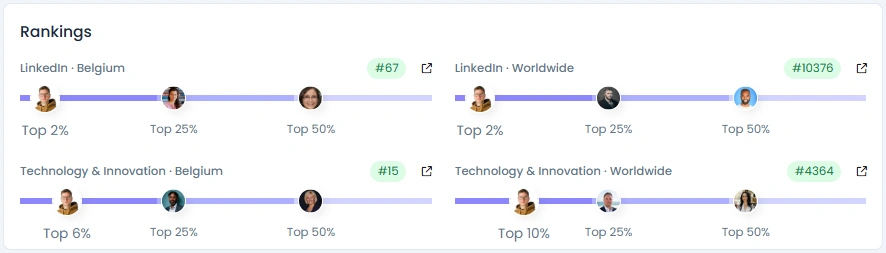 Lorenz’s follower count grew from 9,574 to 14,841 over twenty months, driven by steady posting and increased activity around venture launches. His Influence Score sits at 7 with 4,986 points, placing him in the top 2 percent in Belgium and the top 10 percent globally for Technology and Innovation. Engagement quality is strong with thoughtful comments, industry perspectives, and constructive debate. His posting rhythm mixes images, videos, long-form reflections, and venture updates that keep his content dynamic.