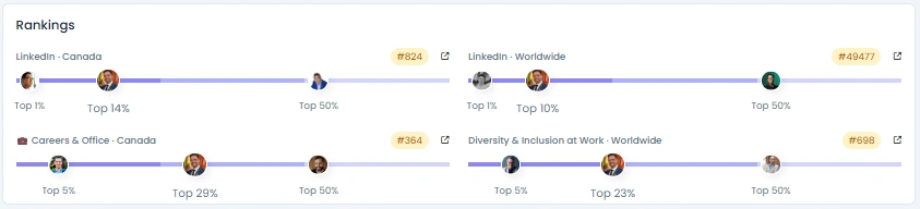 Marc’s follower base grew steadily from around 4,256 to 4,804, matching his career progression and international roles. His influence score lands at 3,752 points, supported by strong engagement quality at 92. AI content signals remain low, highlighting organic conversation and authentic interactions. He sits in the top ranks across LinkedIn Canada and global Diversity and Inclusion communities.