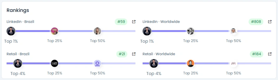 Marcelo has an Influence Score of 7,638 points, placing him among the Top 1% of LinkedIn creators in Brazil and Top 4% globally in Retail. His follower base has grown from 51K to 63K over three years, with steady engagement across leadership and retail-focused content. His Engagement Quality Score of 82 highlights meaningful dialogue with professionals who share insights, questions, and personal stories inspired by his leadership posts.