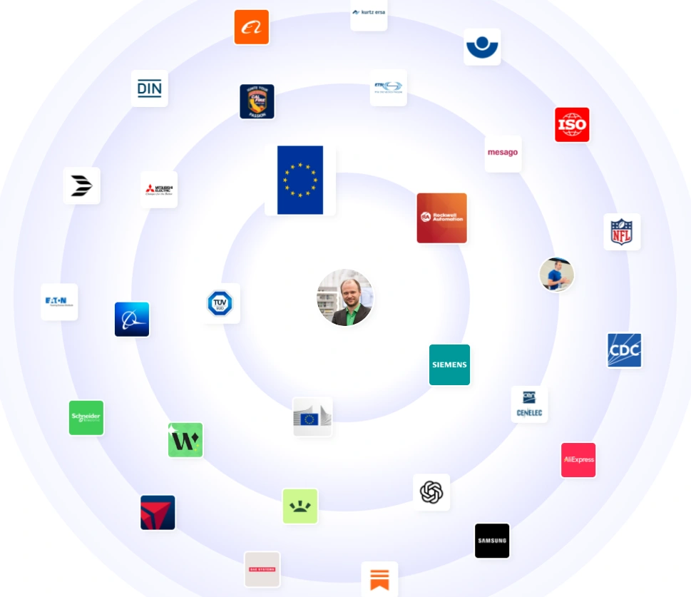 Marcus’s professional network connects him with some of the biggest organizations in technology and safety. His reach includes Siemens, Schneider Electric, Rockwell Automation, Mitsubishi Electric, and TÜV Rheinland, along with regulatory and institutional partners like the European Commission, CENELEC, and DIN. His visibility across global players such as Samsung, OpenAI, and Eaton reflects his position at the crossroads of innovation, compliance, and safety excellence.