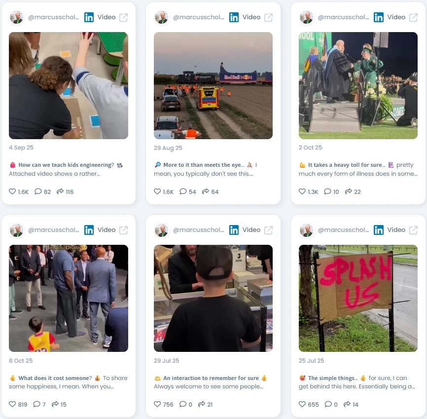 Marcus’s influence is backed by solid growth and engagement. He has over 48,000 followers with a steady 15% yearly growth and an Influence Score of 7,742 points. He ranks among the Top 1% of LinkedIn creators in Germany and within the Top 2% in Technology & Innovation worldwide. His videos regularly attract thousands of interactions, proving that technical storytelling can be both insightful and engaging when delivered with authenticity.