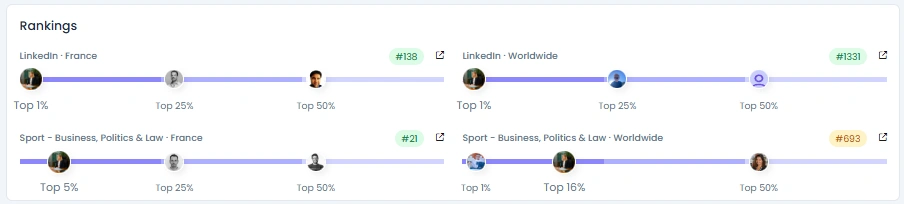 Her circle spans the French Government, the Paris 2024 and 2030 Olympic and Paralympic ecosystem, CNOSF, INSEP, and leading federations. You will often see leaders from cities, regions, and major sports bodies in her threads. Media, event organizers like ASO, and pro-leagues such as the LFP appear in her orbit. This is a policy network with direct reach into funding, venues, and nationwide programs.
