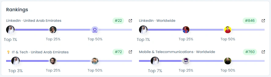 Masood’s community has grown from 15,000 to over 52,000 followers in just two years. His Influence Score of 6,530 points places him in the Top 1% of LinkedIn creators in the UAE and the Top 7% in Mobile & Telecommunications worldwide. His engagement quality of 82/100 highlights consistent dialogue with professionals in telecom and business. Each post sparks conversation, whether about UAE’s 5G leadership or milestones in customer experience.