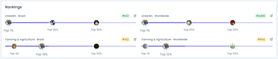 With a solid Influence Score of 5/10 (6,799 pts), Rodrigues' impact is well-established. He is ranked in the Top 1% of LinkedIn influencers worldwide and the Top 1% for Farming and Agriculture globally. His follower growth shows a natural progression over time with consistent increases. His high engagement rates (600−1,000+ likes, 10−35 comments per post) further confirm that his niche, high-quality content resonates powerfully with his professional community.